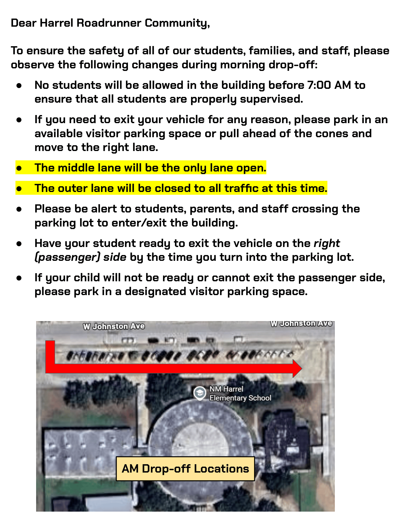 Change in Morning Drop-Off Lanes